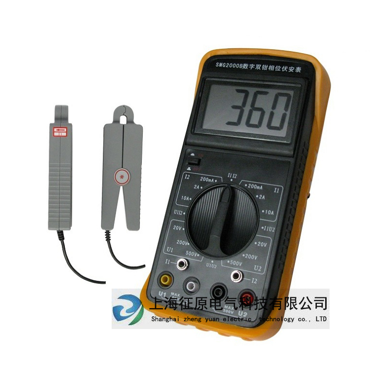 數(shù)字雙鉗相位伏安表SMG2000B是專為現(xiàn)場(chǎng)測(cè)量電壓、電流及相位而設(shè)計(jì)的一種高精度、低價(jià)位、手持式、雙通道輸入測(cè)量?jī)x表。用該表可以很方便地在現(xiàn)場(chǎng)測(cè)量U-U、I-I及U-I之間的相位,判別感性、容性電路及三相電壓的相序,檢測(cè)變壓器的接線組別,測(cè)試二次回路和母差保護(hù)系統(tǒng),讀出差動(dòng)保護(hù)各組CT之間的相位關(guān)系,檢查電度表的接線正確與否等。采用鉗形電流互感器轉(zhuǎn)換方式輸入被測(cè)電流,因而測(cè)量時(shí)無(wú)需斷開(kāi)被測(cè)線路。測(cè)量U1-U2之間相位時(shí),兩輸入回路完全絕緣隔離,因此完全避免了可能出現(xiàn)的誤接線造成的被測(cè)線路短路、以致燒毀測(cè)量?jī)x表。顯示器采用了高反差液晶顯示屏,字高達(dá)25mm,屏幕角度可自由轉(zhuǎn)換約70°,以獲最佳視覺(jué)效果。外殼采用工程絕緣材料,另配橡皮防振保護(hù)套,安全、可靠。