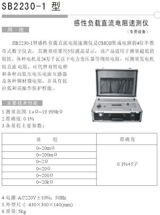 SB2230-1型感性負載直流電阻速測儀是CMOS集成電路的4位半攜帶式數(shù)字儀表, 其測量結果用5位液晶顯示,