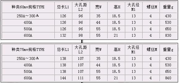 額定壓降:標(biāo)準(zhǔn)值為75mV,用戶定義值45mV、50mV、60mV、100mV或其它。