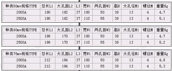 FL-2型2000A~2500A錳銅分流器技術(shù)指標(biāo)